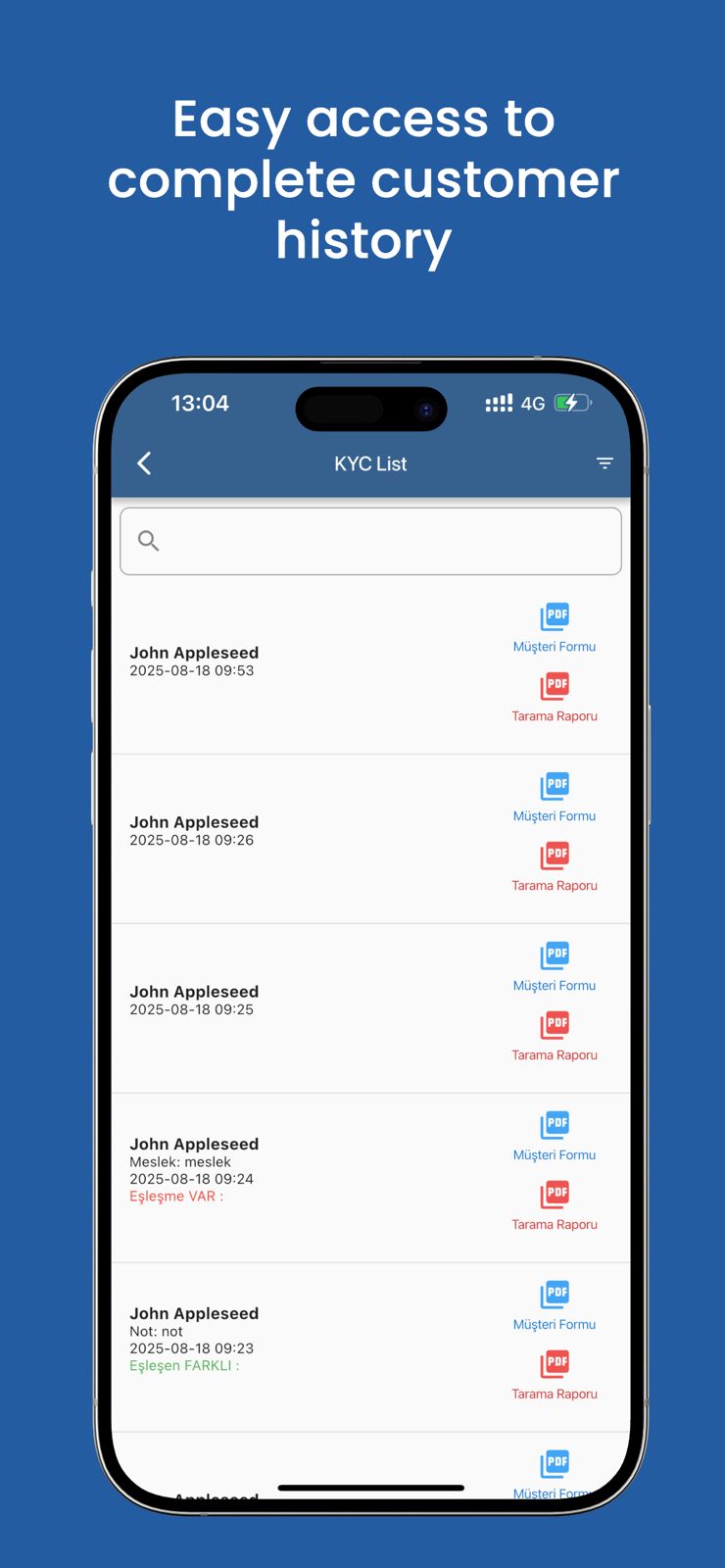 Akıllı arşiv yönetimi, müşteri formu ve tarama raporlarını yönet